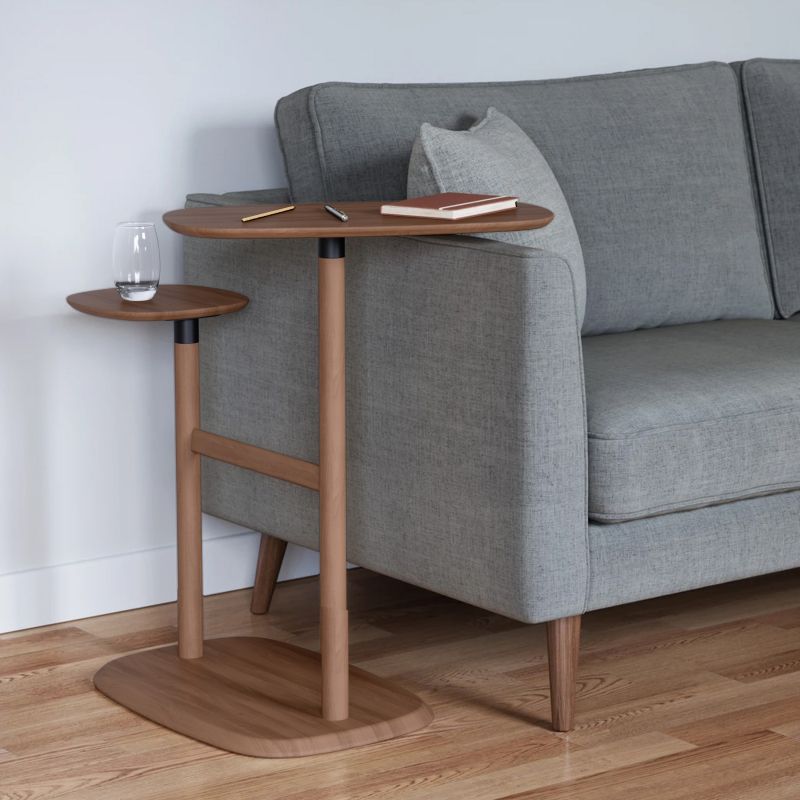 месингов завършек върху помощна масичка от орехово дърво създава визуално