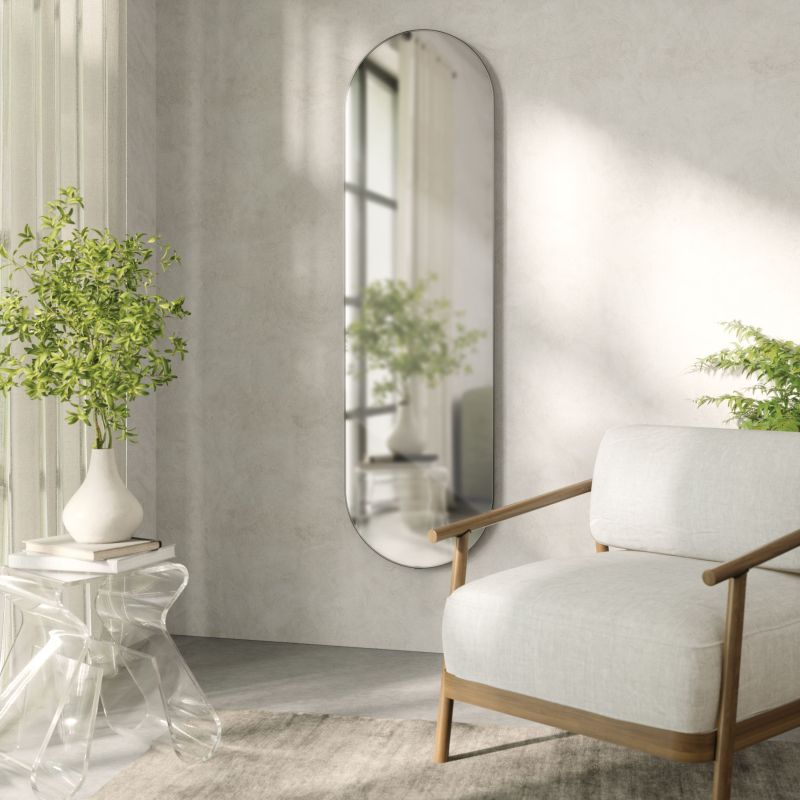 MODERN PILL SHAPE MIRROR: Elongated pill silhouette adds modern character to any room