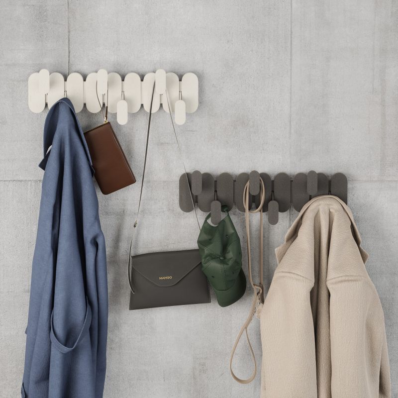С елегантен стенен дизайн, Tempo предлага шест куки, подредени на различни нива, за да оптимизират пространството и да създадат впечатляващ графичен ефект върху стената.