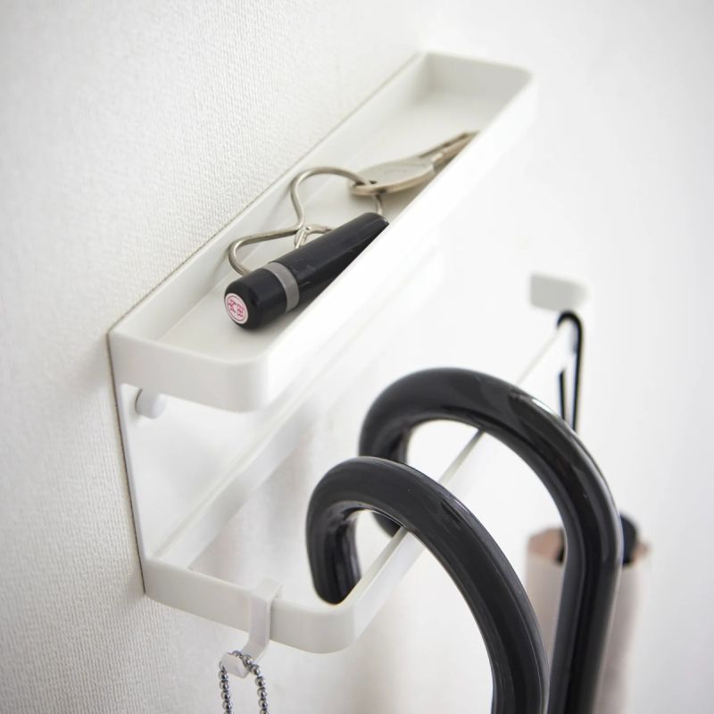 Umbrellas can now be hung up with ease and won't ever get in your way again. Also, even though it's designed to be minimalist and compact, it still has a nifty little tray for all those essentials you want to grab quickly before heading out. From loose change to your favorite lipstick to your keys, everything will have a place on this holder.