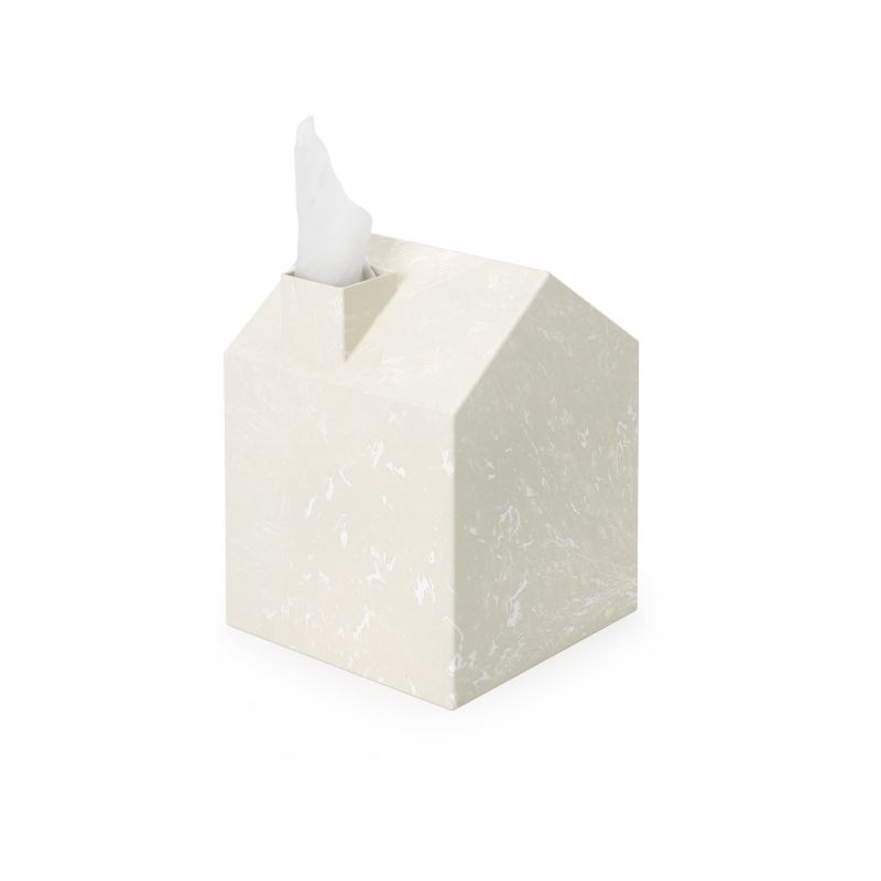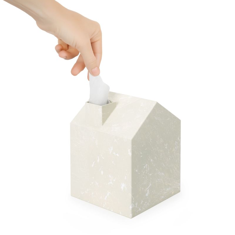 CLEVER & CUTE DESIGN: Casa helps disguise the ho-hum look of an ordinary square tissue box, with your tissue dispensing through the “chimney” of this miniature house-shaped cover, mimicking a puff of smoke